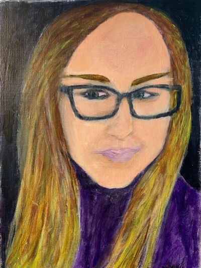 For me, the most important moments in life are often unplanned, personal interactions. I remember such a moment I shared with my infant daughter and recount that memory in the following poem. I painted the portrait attached to this journal entry, from a selfie my daughter took recently and shared with me. I used the selfie photo because I have no photo of the baby my daughter was at the moment described in the poem. Connecting the memory with the painting mixes the past and present in what I hope is a realistic and meaningful way.